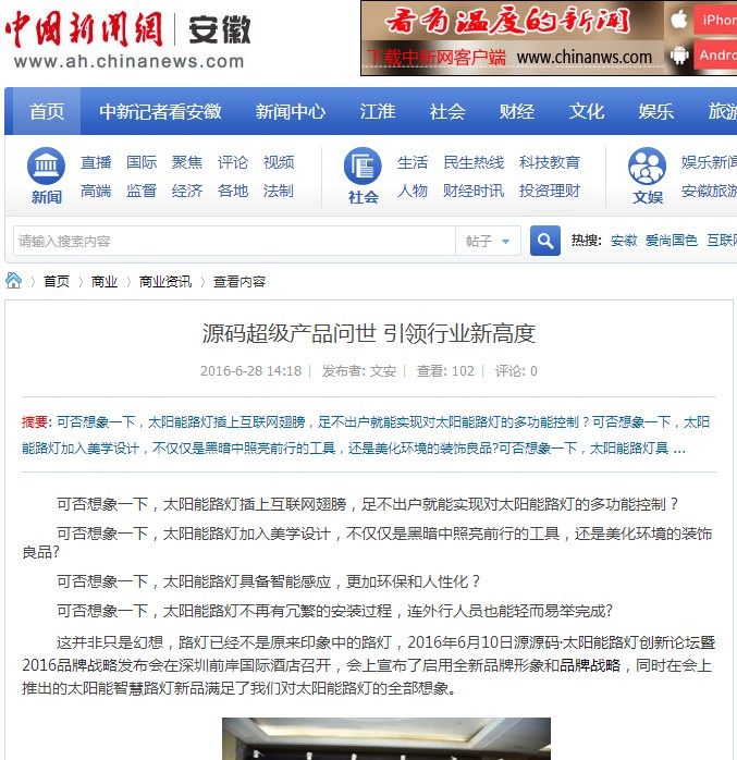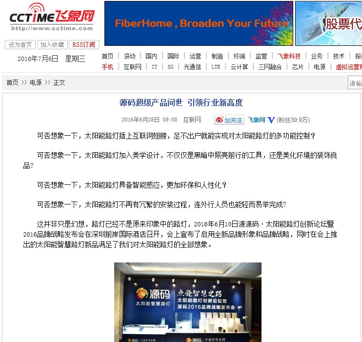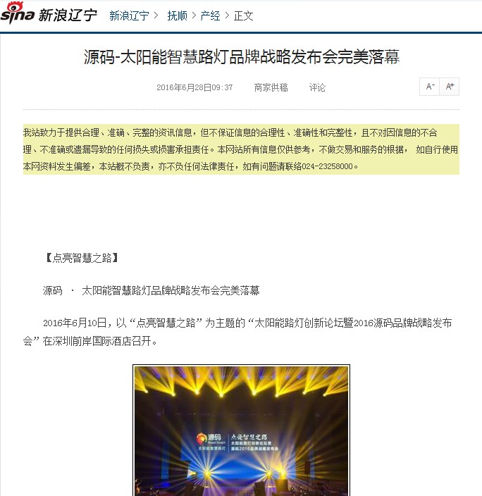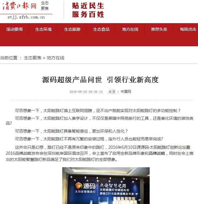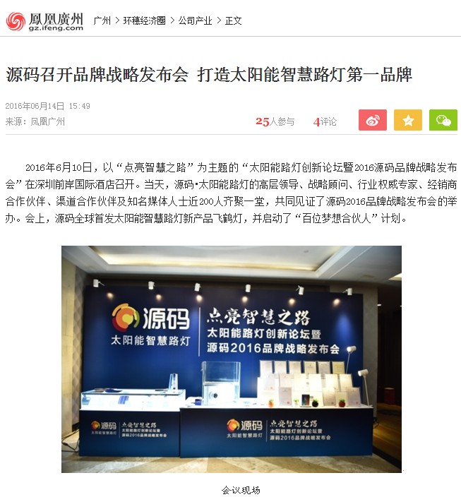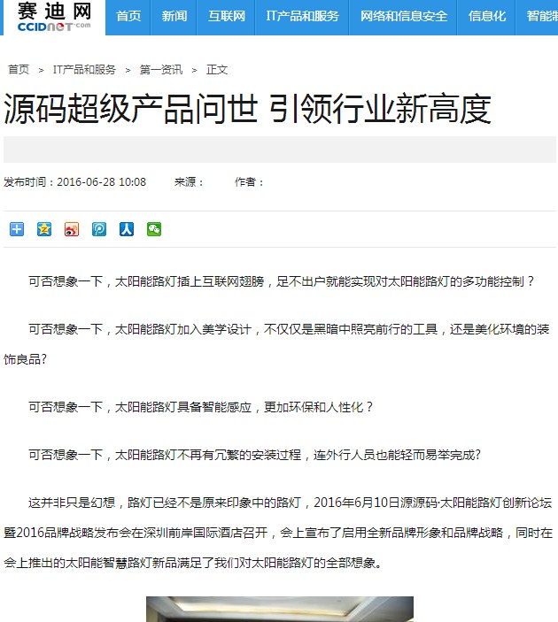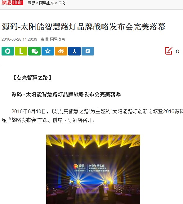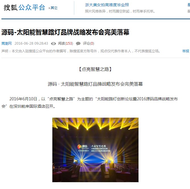 繼源碼在深圳成功舉行太陽能路燈創新論壇暨源碼2016品牌戰略發布會后,引起了各大媒體和行業的廣泛關注,行業專家柴鈺教授表示,此次源碼發布會已經顛覆了行業對傳統太陽能路燈的認知,對太陽能路燈行業的發展指明了方向。在各大媒體的爭相報道下,網上掀起一片關于“源碼”的信息狂潮。