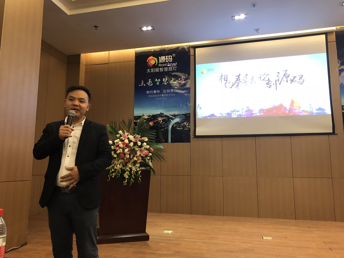 會議上,源碼副總項佰川首先對行業的現狀進行闡述,他表明行業“存量大、環境亂”,要在挑戰中把握機遇,在逆境中獲得新生。緊接著項總從源碼的品牌、渠道、產品、服務等講述源碼在行業內的優勢。隨后項總又對源碼未來作出了發展規劃,并表示未來源碼將繼續堅持做品牌,將源碼打造成“太陽能路燈先鋒品牌”。項總精彩的發言讓大家聽的心潮澎湃,干勁十足。